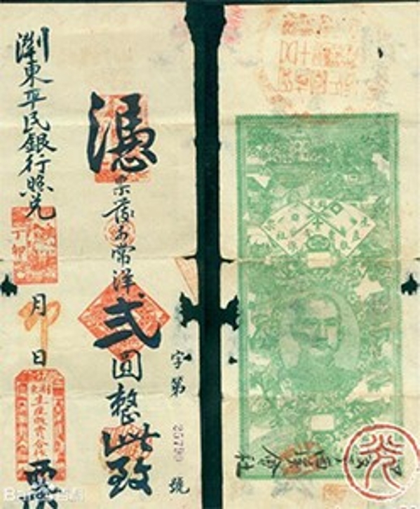 1926年,由中國(guó)共產(chǎn)黨領(lǐng)導(dǎo)發(fā)起的湖南省第一次農(nóng)民代表大會(huì)通過(guò)《農(nóng)民銀行決議案》,規(guī)定銀行以“ 制止高利借貸,提倡平民儲(chǔ)蓄,活躍地方金融,增進(jìn)農(nóng)工生活”為宗旨。1927年1月,湖南瀏陽(yáng)瀏東六個(gè)區(qū)的農(nóng)民協(xié)會(huì)根據(jù)《農(nóng)民銀行決議案》發(fā)起創(chuàng)辦瀏東平民銀行,同時(shí)創(chuàng)辦合作社,發(fā)行貨幣,服務(wù)農(nóng)友。瀏東平民銀行所發(fā)行的紙幣是保證兌現(xiàn)的,凡持有銀行臨時(shí)兌換券和信用券需要到外地采購(gòu)物資或作其他用途的,可以到銀行兌換光洋。但為了保證紙幣在本區(qū)域范圍內(nèi)正常流通,農(nóng)會(huì)宣布不準(zhǔn)私人出市票,也不準(zhǔn)市場(chǎng)上使用光洋,凡持現(xiàn)洋到市場(chǎng)上購(gòu)買(mǎi)貨物或到農(nóng)村收購(gòu)?fù)撂禺a(chǎn),均須先到平民銀行兌換紙幣。