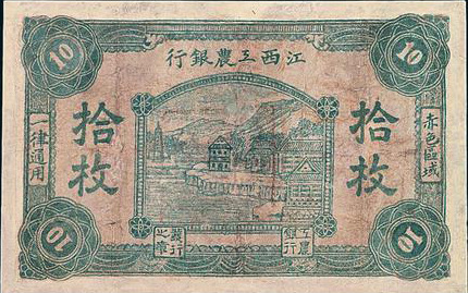1931年11月,湘鄂贛省蘇維埃政府為統(tǒng)一貨幣,將各縣市銀行逐步統(tǒng)一為鄂東南工農(nóng)銀行;在平江、瀏陽(yáng)、修水、銅鼓、宜春、萬(wàn)載地區(qū)統(tǒng)一為湘鄂贛工農(nóng)銀行。由于受?chē)?guó)民黨的經(jīng)濟(jì)封鎖,湘鄂贛蘇區(qū)一些物資價(jià)格上漲,財(cái)政赤字增加,使銀行發(fā)行貨幣增多。到1932年4月,省工農(nóng)銀行已發(fā)行紙幣30萬(wàn)元,但準(zhǔn)備現(xiàn)金僅4萬(wàn)余元,以致發(fā)出的紙幣無(wú)法兌現(xiàn),曾發(fā)生拒用現(xiàn)象。為此,湘鄂贛省蘇維埃政府于同月作出決定,省工農(nóng)銀行不再發(fā)行貨幣,已發(fā)行的限3個(gè)月內(nèi)全部收回,所需銀元10萬(wàn)元由各縣蘇維埃政府和紅十六軍分擔(dān)籌措。貨幣收回后,湘鄂贛省工農(nóng)銀行撤銷(xiāo),另成立中華蘇維埃共和國(guó)國(guó)家銀行湘鄂贛分行。