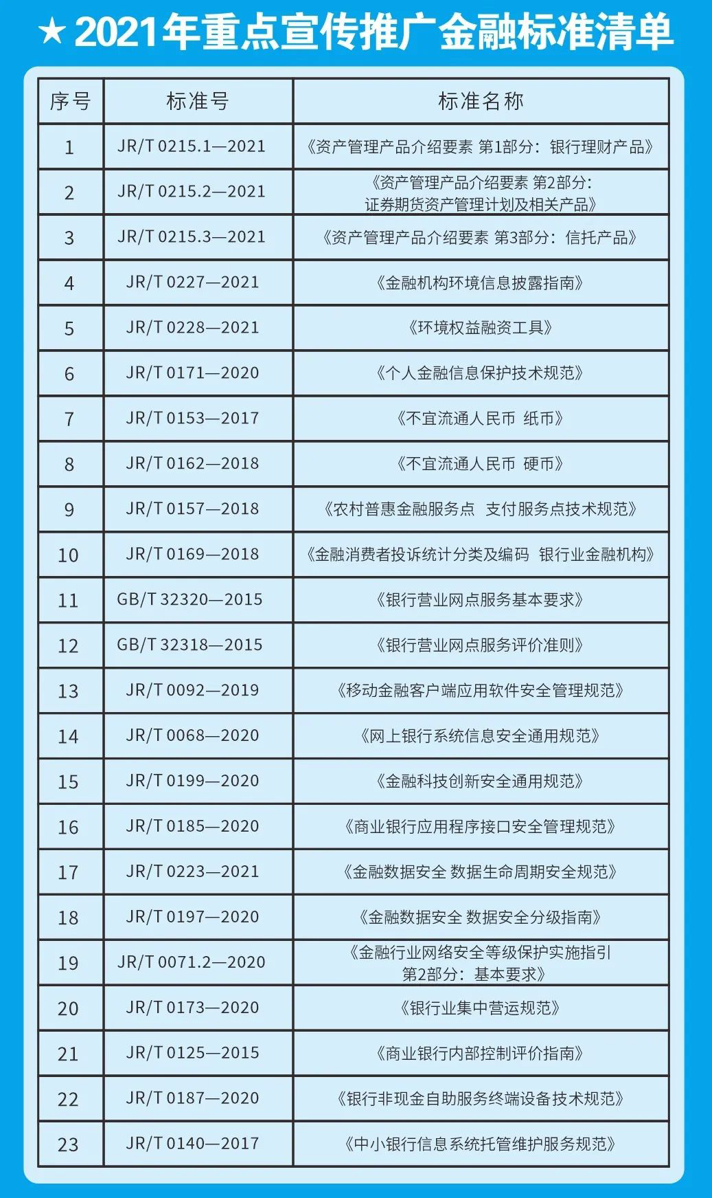 金融標(biāo)準(zhǔn)是金融業(yè)健康發(fā)展的技術(shù)支撐,是金融業(yè)治理體系和治理能力現(xiàn)代化的基礎(chǔ)性制度,中國(guó)人民銀行宣傳推廣重點(diǎn)金融標(biāo)準(zhǔn),切實(shí)做好金融從業(yè)人員及消費(fèi)者金融標(biāo)準(zhǔn)化宣教和普及工作,在行業(yè)內(nèi)營(yíng)造對(duì)標(biāo)達(dá)標(biāo)的良好氛圍,引導(dǎo)消費(fèi)者使用達(dá)標(biāo)服務(wù)與產(chǎn)品,進(jìn)一步維護(hù)消費(fèi)者合法權(quán)益。