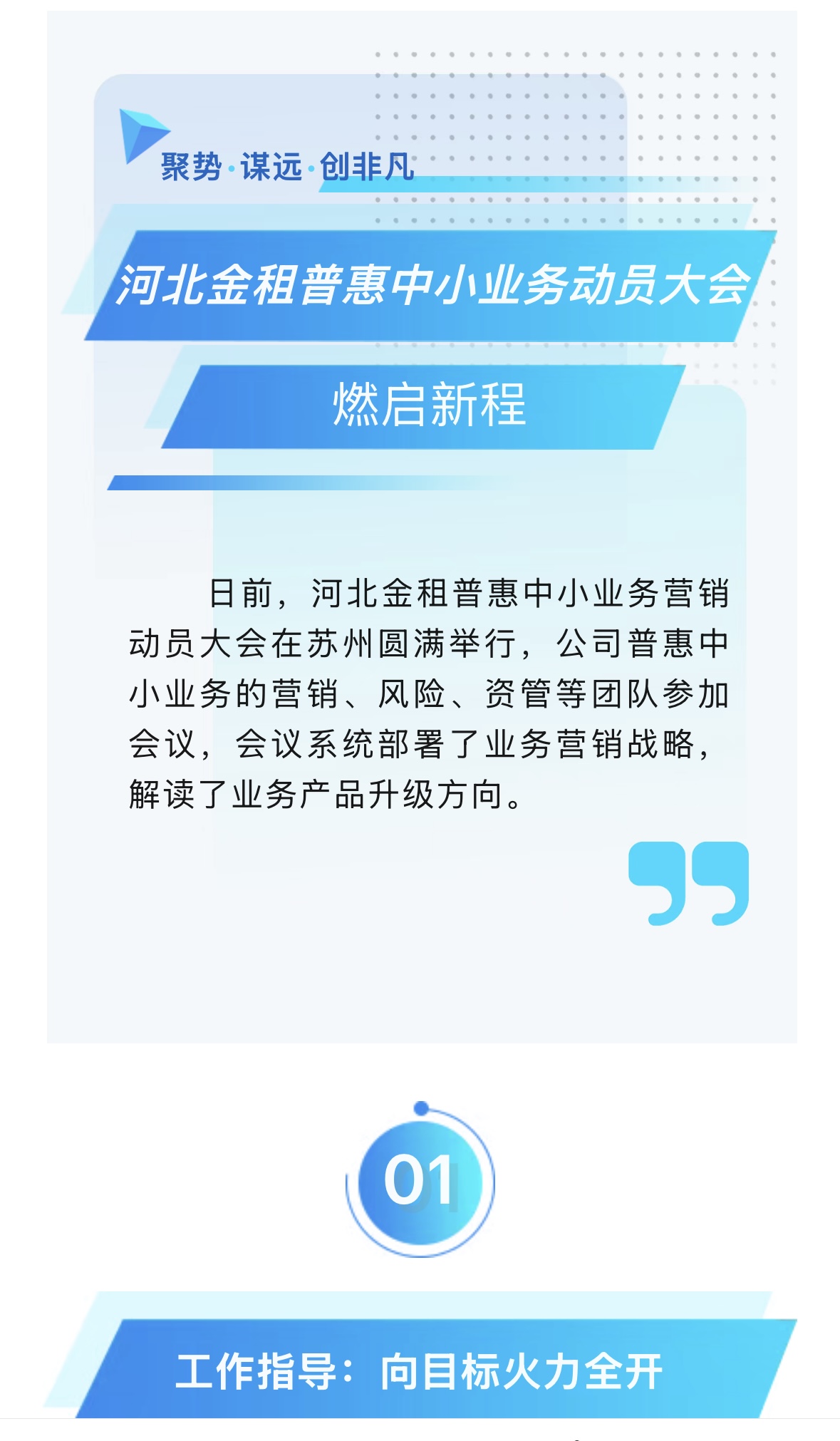 這場集結(jié)思想力、戰(zhàn)斗力的動員會,標志著公司普惠中小業(yè)務進入戰(zhàn)略攻堅期,全體員工將以"首戰(zhàn)即決戰(zhàn)"的決心,把研討成果轉(zhuǎn)化為破局動能,全力沖刺全年的戰(zhàn)略目標,為公司高質(zhì)量發(fā)展注入強勁動能!