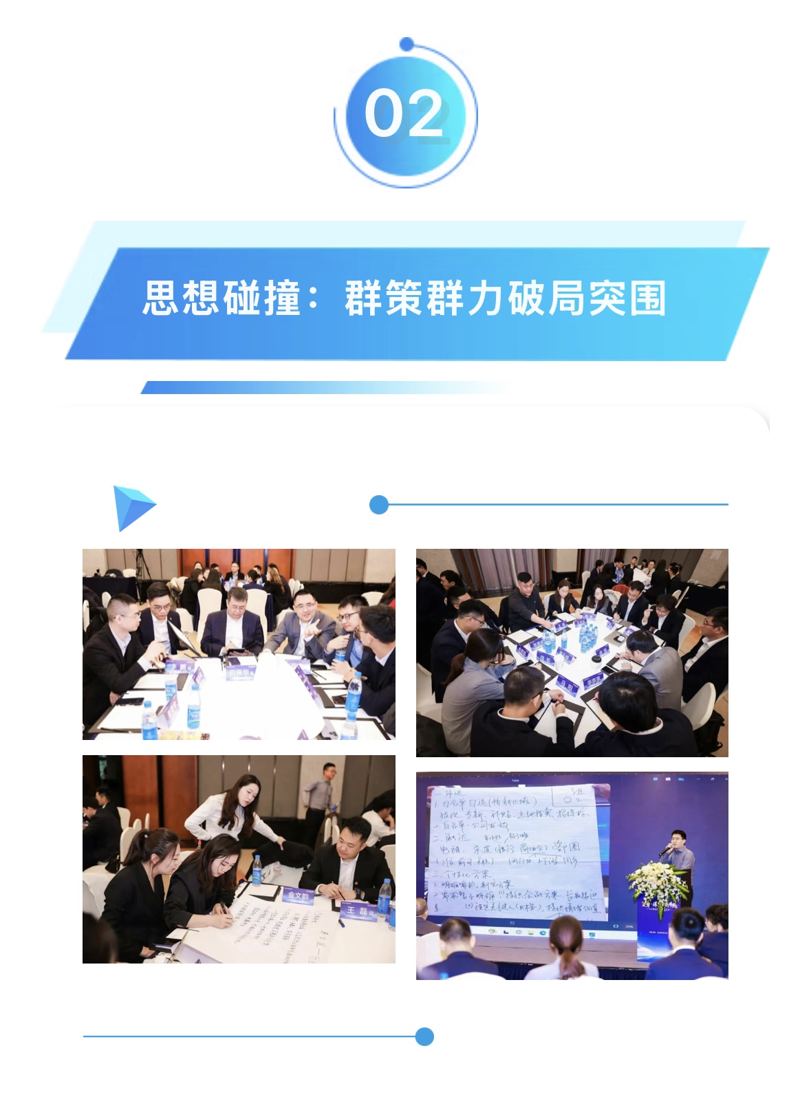 在“渠道深耕”“精準獲客”“收益提升”“差異化破局”等核心議題的研討環(huán)節(jié),現(xiàn)場氛圍熱烈非凡,團隊成員分組討論,打破區(qū)域與部門的劃分,以務實實戰(zhàn)的視角全身心投入到頭腦風暴之中。從客戶畫像建模到同業(yè)競爭策略,從資源整合路徑到風控前置方案,豐富的實操經(jīng)驗在團隊間充分流動、相互賦能,全方位推動團隊成長,為業(yè)務的發(fā)展補充了源源不斷的新動能。
