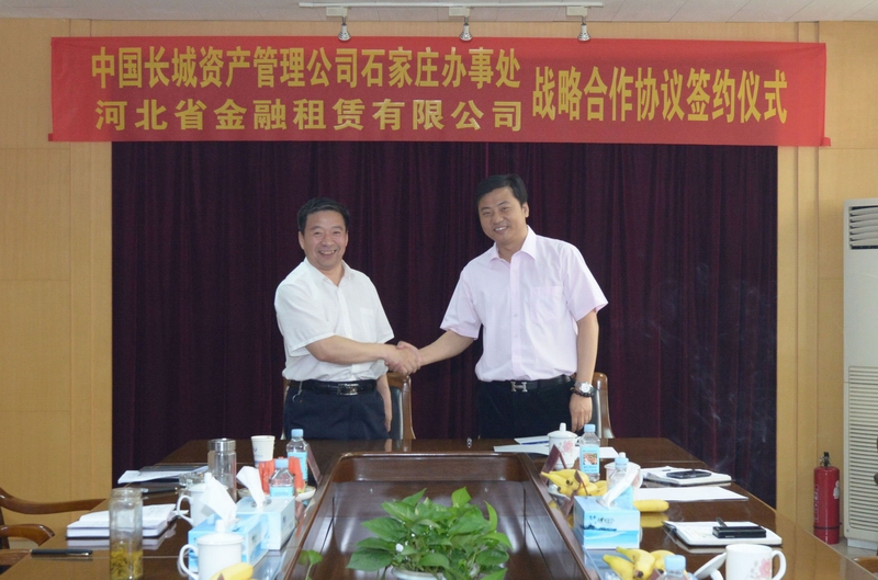 2013年5月31日,為推動(dòng)各領(lǐng)域業(yè)務(wù)合作,促進(jìn)雙方共同發(fā)展,中國(guó)長(zhǎng)城資產(chǎn)管理公司石家莊辦事處總經(jīng)理齊銀庚一行與公司總裁徐敏俊及各位領(lǐng)導(dǎo)進(jìn)行了戰(zhàn)略合作洽談會(huì)。在會(huì)上,雙方領(lǐng)導(dǎo)本著平等互利、優(yōu)勢(shì)互補(bǔ)、資源共享的原則友好協(xié)商,決定建立全面業(yè)務(wù)合作關(guān)系。并就風(fēng)險(xiǎn)控制、客戶拓展、資產(chǎn)業(yè)務(wù)等方面進(jìn)行了廣泛的交流,對(duì)彼此未來(lái)的合作前景和方向深入地交換了意見(jiàn)。雙方將依托各自的行業(yè)特點(diǎn)和業(yè)務(wù)范圍,在資產(chǎn)管理、信托業(yè)務(wù)、金融租賃、融資業(yè)務(wù)等方面進(jìn)行全面合作。努力實(shí)現(xiàn)優(yōu)勢(shì)互補(bǔ)、大力促進(jìn)協(xié)同發(fā)展。當(dāng)天雙方正式簽署了《戰(zhàn)略合作協(xié)議》,確立了合作關(guān)系。