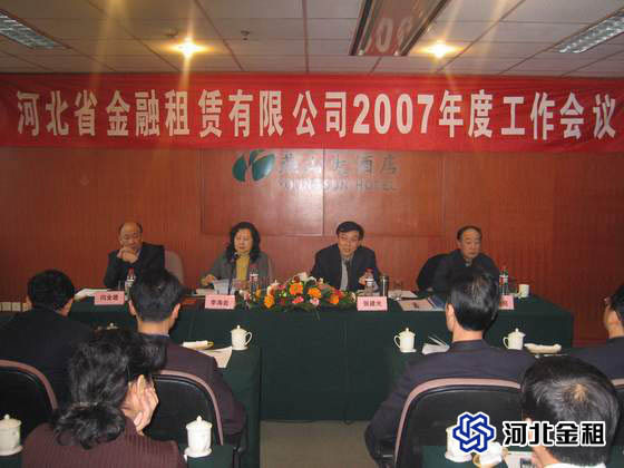 1 月 26 日 1 月 28 日 公司在平山御溫塘召開 2007 年工作研討會,會議就業(yè)務(wù)創(chuàng)新和風(fēng)險控制及考核、激勵及人才培養(yǎng)展開了激烈的討論,邀請了國內(nèi)租賃行業(yè)資深專家屈延凱及林正大進行了專題講座。取得了良好的效果。