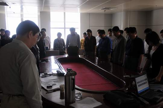 5 月 19 日 ,下午 2 : 28 舉國默哀三分鐘。河北金租會議室,默哀氣氛莊嚴(yán)肅穆,只聽窗外汽笛齊鳴,于是心有感念:愿生者堅強振作,早日重建家園,死者則安心長眠,天堂沒有地震。